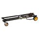RocknRoller R9XLHD (Mighty Plus) Multicart; Collapsible transport cart; outfitted with rugged, foam-filled no-flat R-Trac 8" x 3" rear wheels and 6" x 2" front swivel casters that ride smoothly with excellent traction, similar to pneumatic tires, but without the hassle of upkeep or repair; Powder-coated steel tube frame; Expandable Total Length: 97 - 152 cm (38" - 60"); Frame Bed Width: 34 cm (13,5"); Load Capacity: 272 kg (600 lbs); Weight: 15,4 kg (34 lbs)